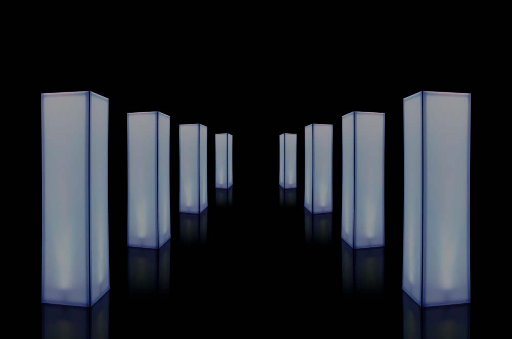 Our event lighting fixtures are unique for every occasion, made from the highest quality materials, designed to withstand the hustle and bustle of every event. We have in stock from light cubes to towers of 3 meters high with low consumption LED lighting with a perfect finish. Our customizable 1×1 meter cube-shaped lamps with DMX-controllable RGB LED system are a modern and elegant option. We also have 2x2x0.50 meters and 2×1.50 meters lamps.